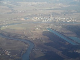 Pohled na Račický kanál nedaleko města Štětí ve středních Čechách. Foceno z letadla na lince Manchester-Praha, které klesá na přiblížení k ruzyňskému letišti